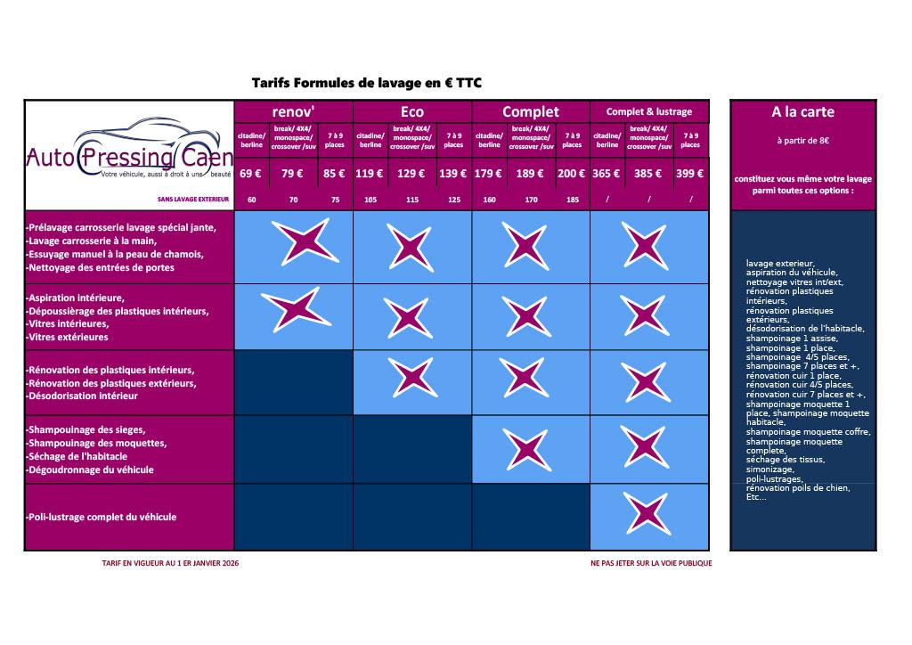 Auto Pressing Caen est un centre de nettoyage automobile accessible aux particuliers et aux entreprises depuis plus de 27 ans à Herouville-Saint-Clair. Toute l'équipe d'Auto Pressing Caen est là pour vous conseiller afin de répondre à vos besoins. Pour cela, nous vous proposons des forfaits ou des prestations à la carte, n'hésitez pas à nous contacter.